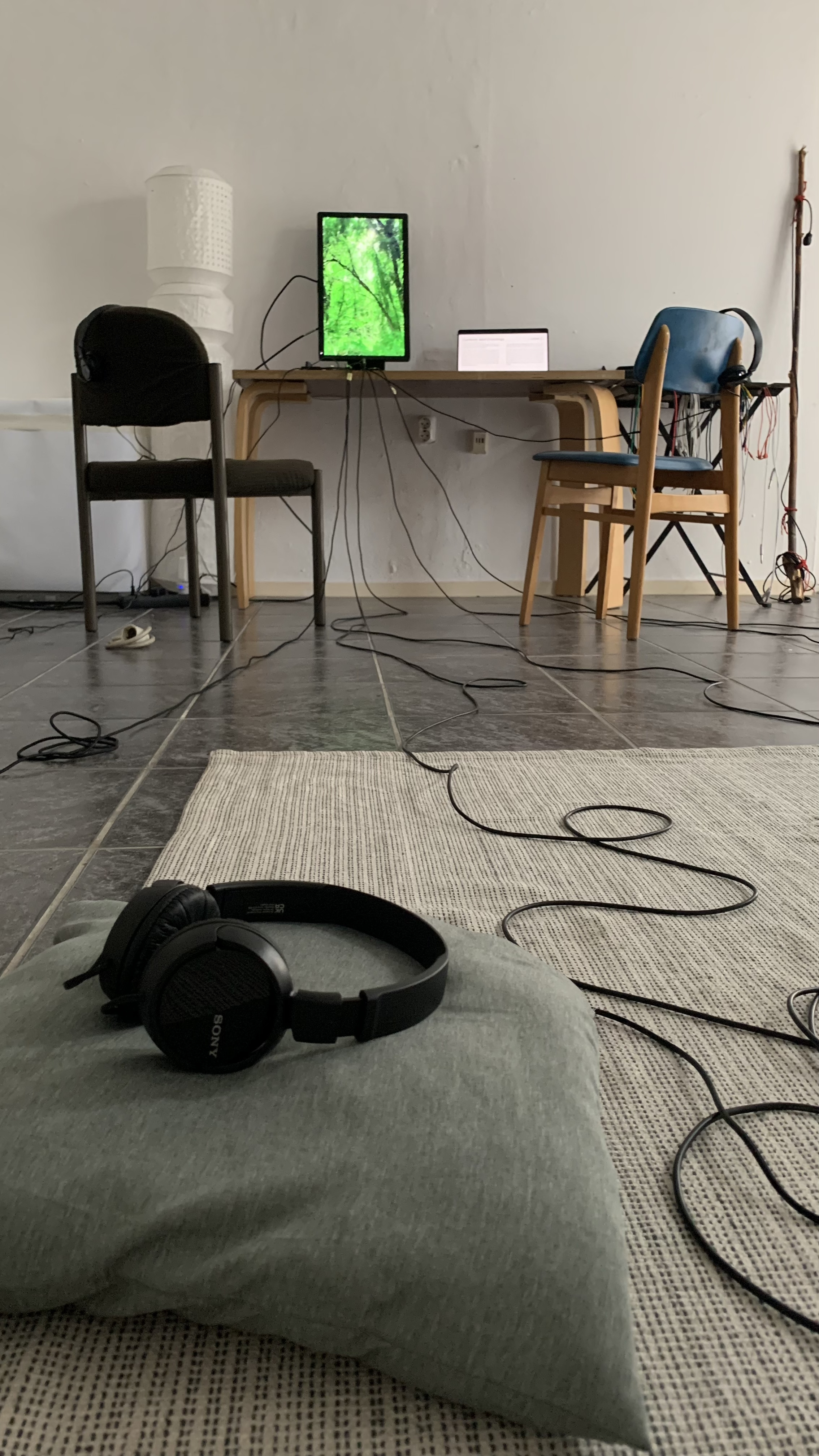 The audio-visual piece was presented at the Open Studio event on June 15, 2025 during the residency. It combines field record- ings and video materials from the Elbe River and its natural surroundings. The visuals respond to the sounds, bringing the audience into an immersive and mysterious soundwalk through nature.